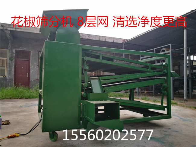 2 花椒篩采用脫枝打糍與多層不同樣式篩板組合而成,對枝,籽,殼,土等雜質(zhì)快速分離節(jié)約勞動(dòng)力。