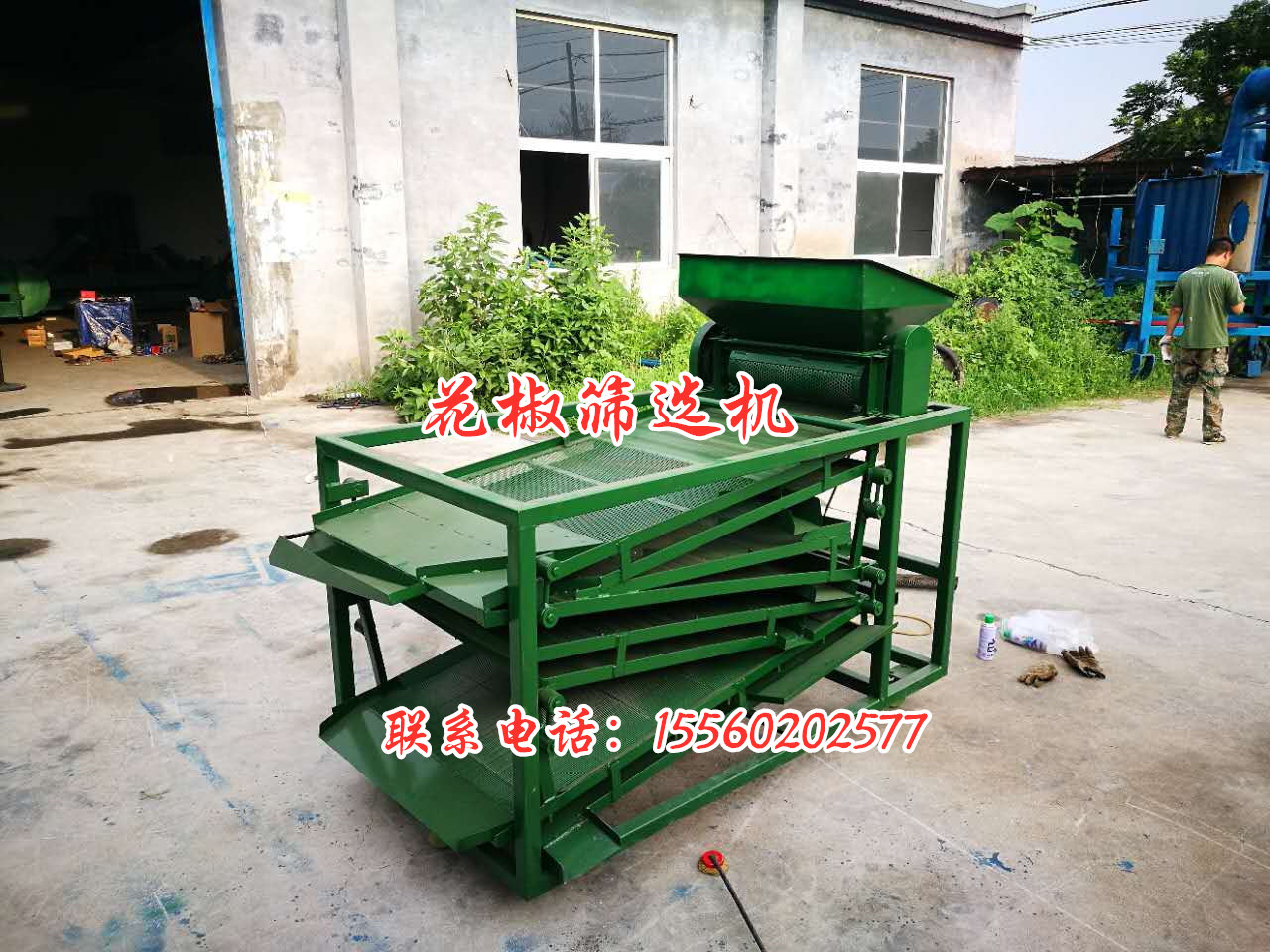 使用該機器可以把花椒中的籽、桿、葉、塵土等雜質分別清選出來,同時分出花椒顆粒等級,取代繁重的人工清選勞動。花椒清選機是專用于花椒脫粒、清選、分級、去雜的機械。 花椒篩選機及其他配套設備(提升機、皮帶機、絞龍、螺旋輸送機等)用途和特點:本機下方設有風機,可將從篩面流下的椒籽和花椒進一步風選分離,使篩凈率大大提高。
