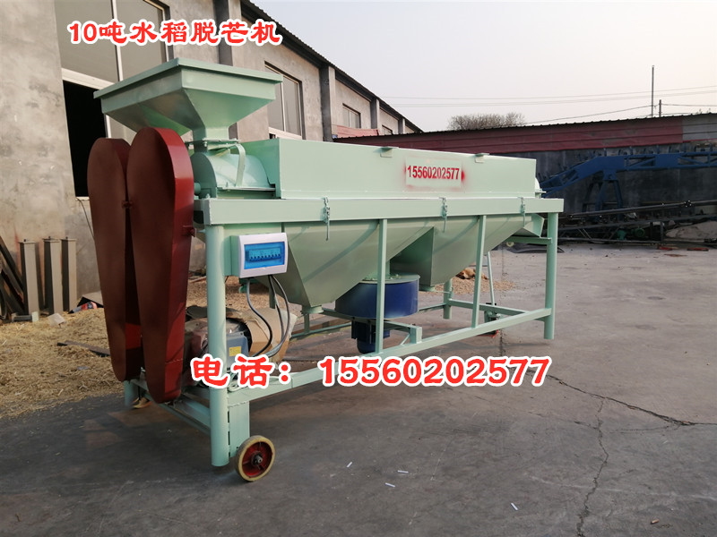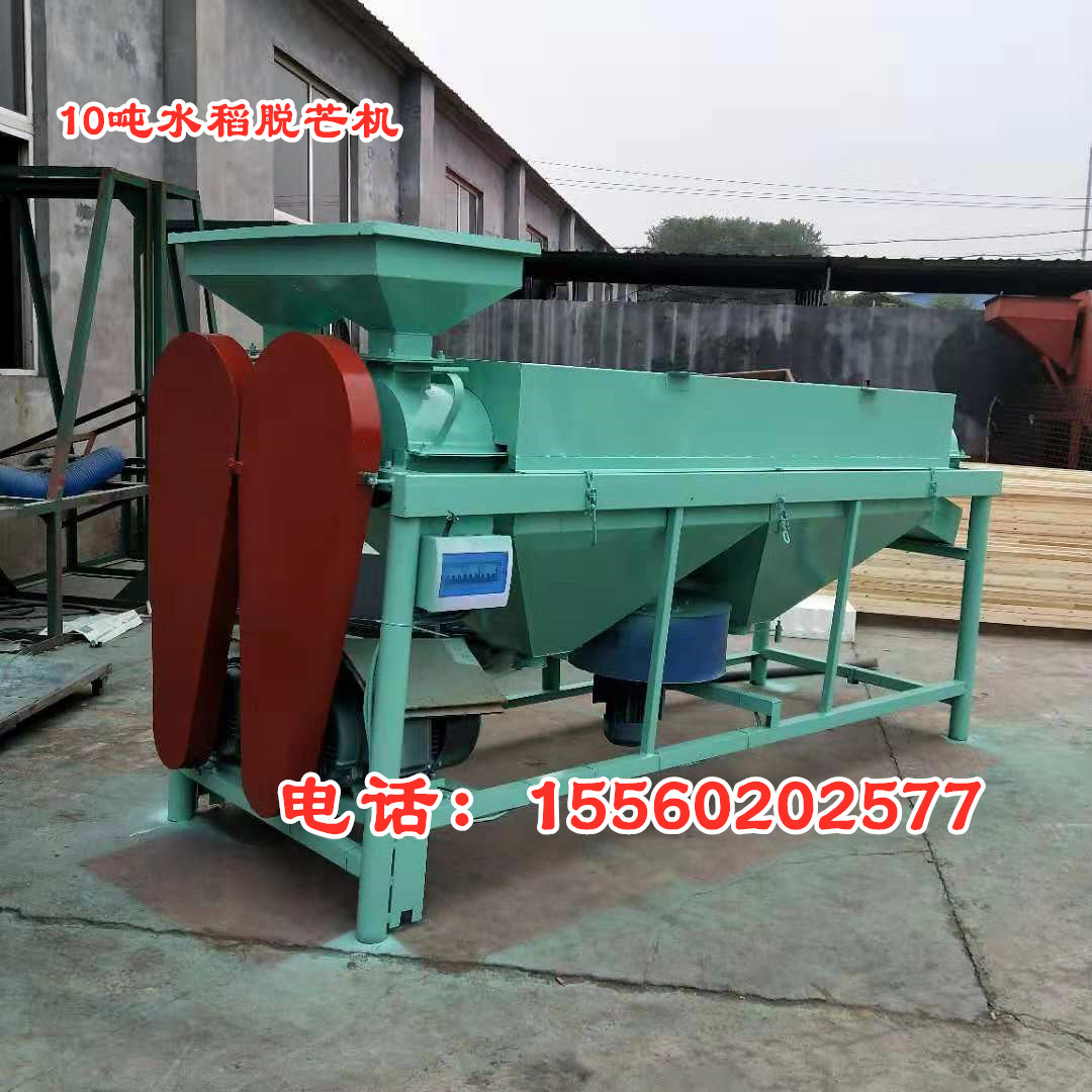 水稻除芒機,是一種專門用于對帶芒水稻種子及其它帶芒刺種子進行芒、刺處理的機具。適用于種子加工成套設備的配套使用。 結構特點 該機主要由:機殼、傳動軸、打桿、活門調節裝置、驅動裝置等部件組成。采用旋轉打桿及其配合的內襯耐磨板,對種子表面施加搓擠、打擊作用,以除去芒、刺毛、松散的穎片及未脫凈的穗頭、莢殼等。通過清除芒、刺,改善了種子的表面,有利于種子加工的下道工序的作業。
