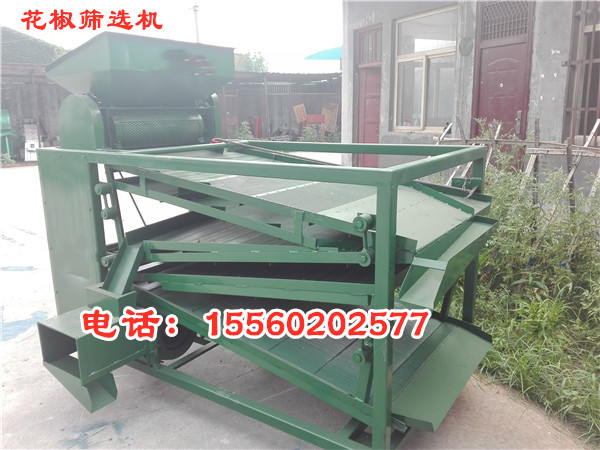 使用該機器可以把花椒中的籽、桿、葉、塵土等雜質分別清選出來,同時分出花椒顆粒等級,取代繁重的人工清選勞動。花椒清選機是專用于花椒脫粒、清選、分級、去雜的機械。 花椒篩選機及其他配套設備(提升機、皮帶機、絞龍、螺旋輸送機等)用途和特點:本機下方設有風機,可將從篩面流下的椒籽和花椒進一步風選分離,使篩凈率大大提高。